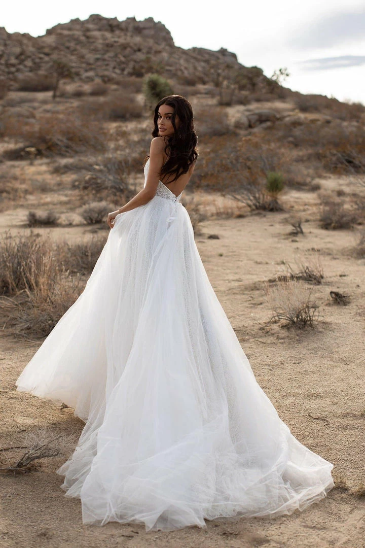 The Paisley Gown is breathtakingly beautiful, features a luxurious beaded bodice with unique cut-out mesh detailing and thin straps. The delicate skirt is made from layers of tulle and textured lace for a dreamy gown you’ll never want to take off.  Â