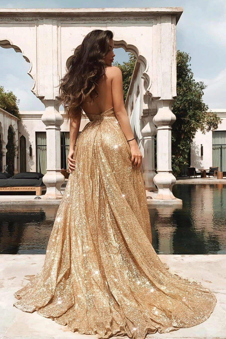 The Saina Glitter Gown is the dress of every girl’s dreams. All eyes will be on you as you arrive dripping in sparkly luxurious layered glitter fabric (which goes crazy in natural lighting). Features a plunge V-neckline and low back to show just the right amount of skin. The halter neck style is flattering, the dress is non-stretchy & fully lined.
