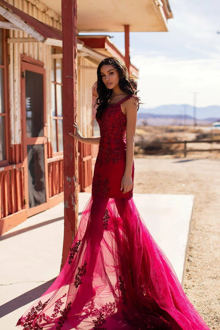 Cassie is a stunning beaded tulle mermaid gown. Features a sweetheart neckline & intricate beading detail all over. Cassie has a mini dress satin lining with a sheer tulle mermaid style train to flow behind you for added luxe. Also has a low scoop back.Â
