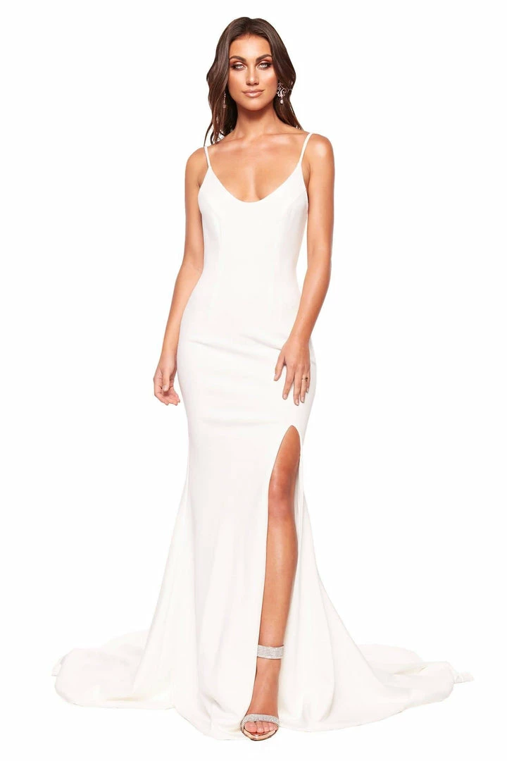 Malia is the perfect simple gown for any occasion. Features a scoop neckline, thin straps, low back & side slit for an elegant yet sexy look. Made from medium weight ponti fabric which is super stretchy & fitted.