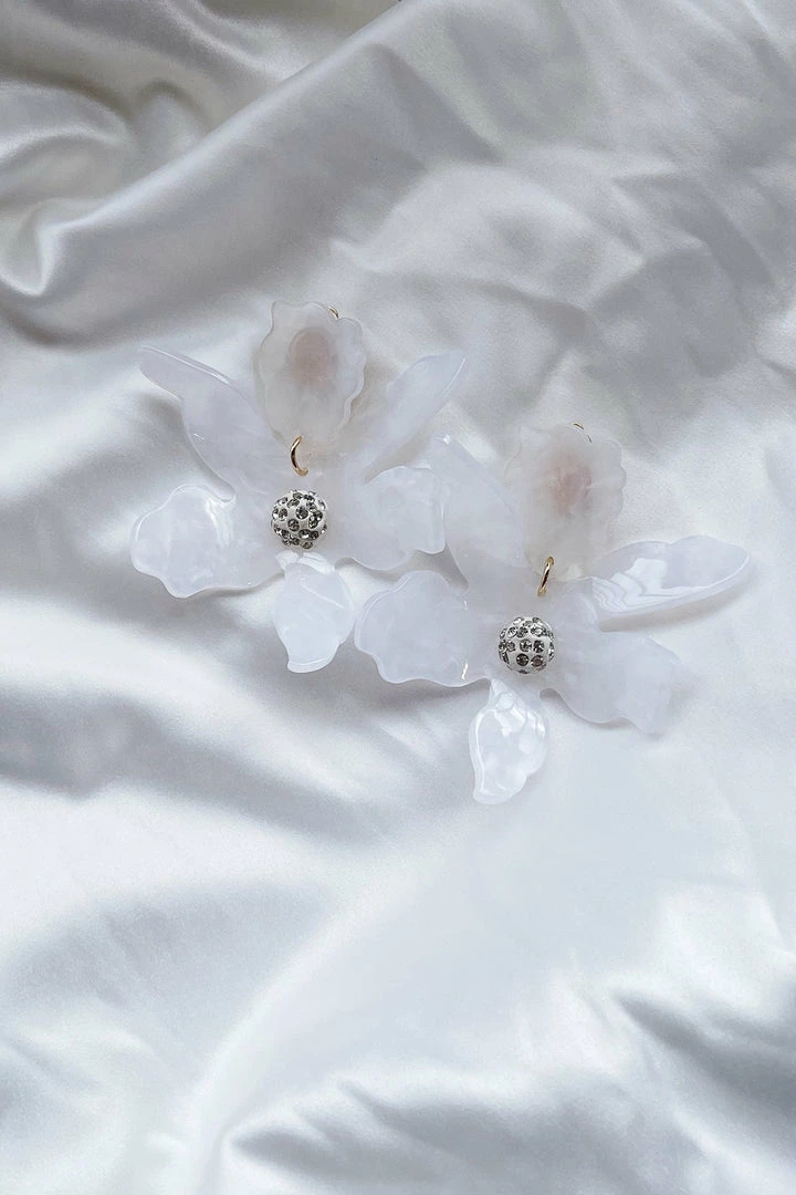 If you love a good statement earring, the Luna Mini Flower Earrings are perfect for you! Featuring gold hardware with a metallic teal acrylic flower and tiny sparkling diamanté detailing in the center.Â