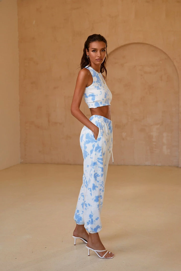 The Cara Joggers are a winter must-have. The tie-dye trend is here to stay & these adorable sky blue & white joggers are perfect for chillin’ in style. Pair with the Hailey Tank in sky blue, the perfect outfit for that in-between weather.