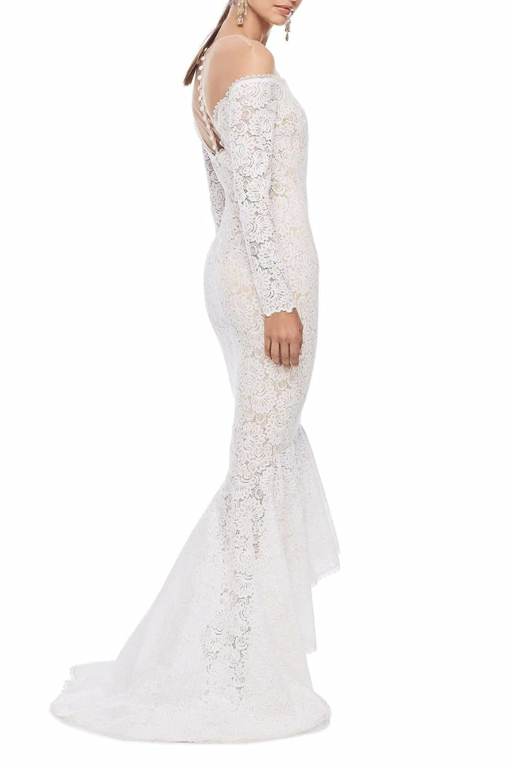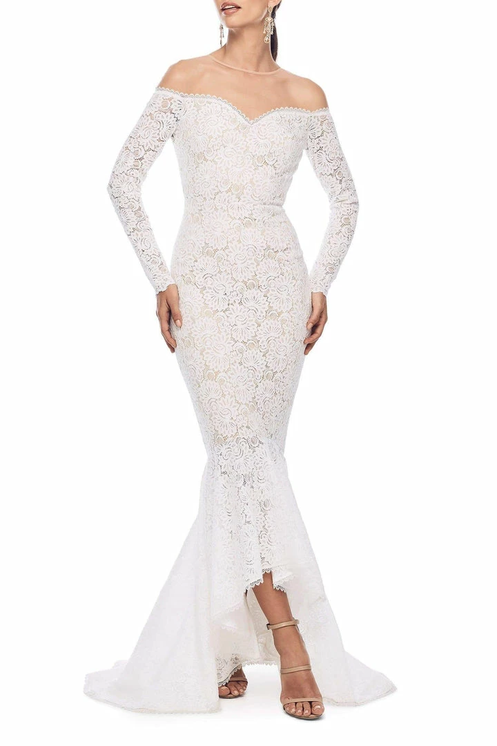 All eyes will be focused on you when you step out in the gorgeous Margarita lace off-the-shoulder gown. This style featured an illusion off the shoulder neckline with sheer lace long sleeves. The dramatic flared out skirt will turn heads for sure. Dance the night away in the Margarita dress.Â