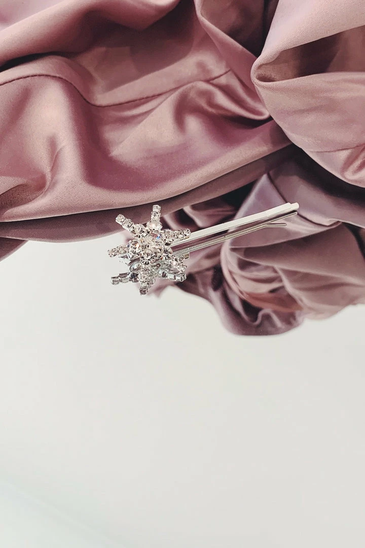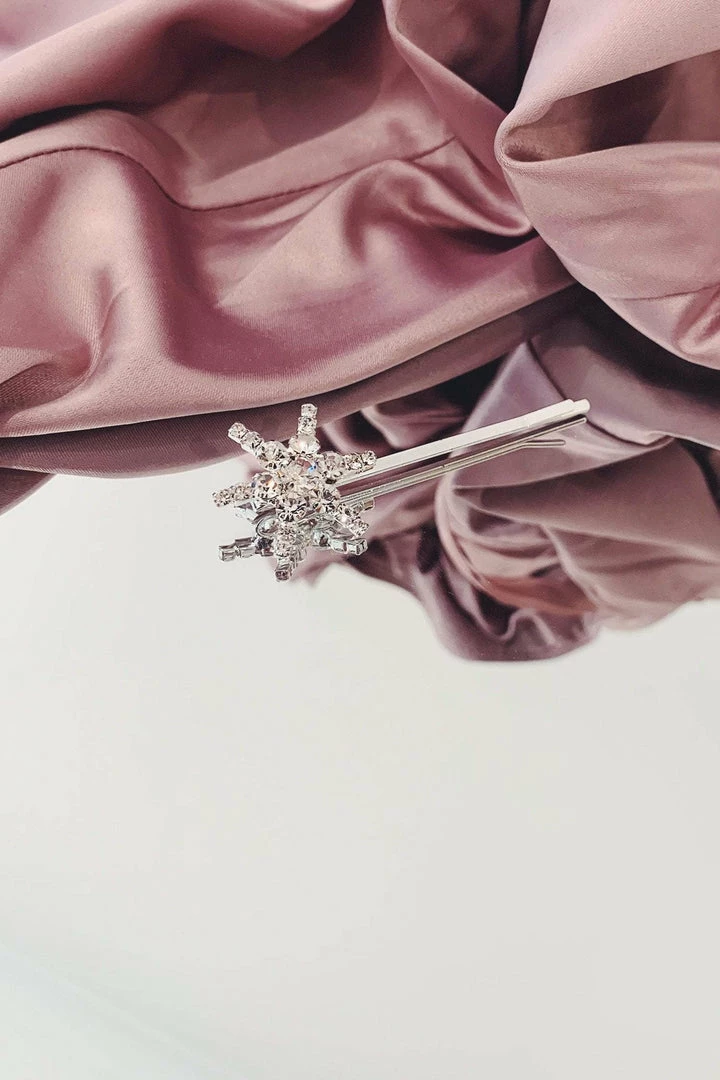 The Silver Star Hair Pin is perfect. It features a unique six-point star design with silver crystal detailing. This intricate and elegant design creates the ultimate statement pin.Â