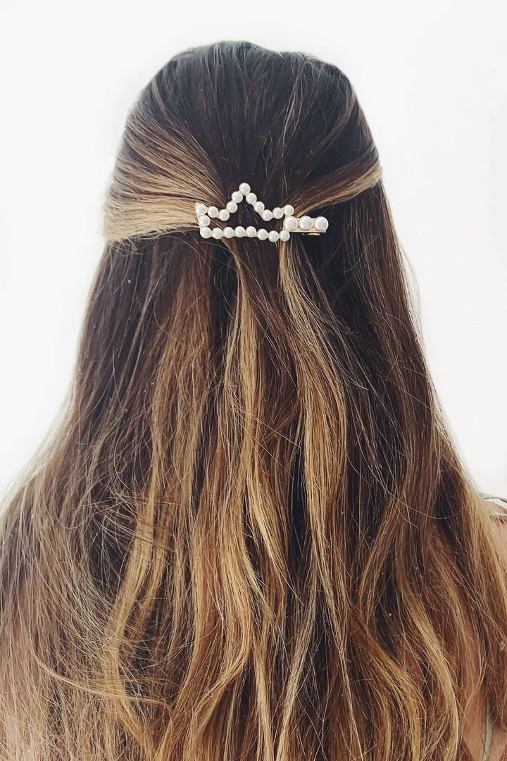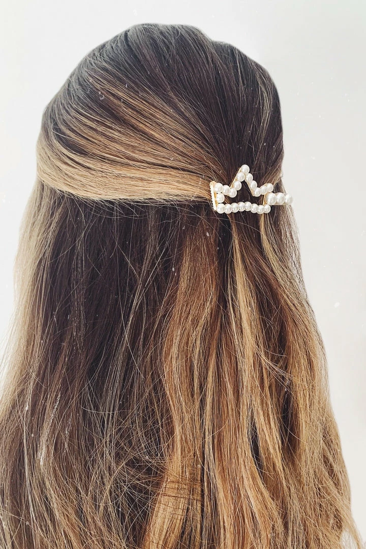 The Gold Pearl Crown Hair Clip will make you feel like a princess. It features a unique crown design with pearl detailing. We love pairing this style with our glam gowns.Â