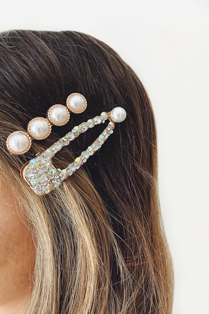 The Iridescent Crystal Stone Large Hair Clip with Pearl Detailing creates the ultimate statement . It features a unique crystal design with pearl detailing.Â