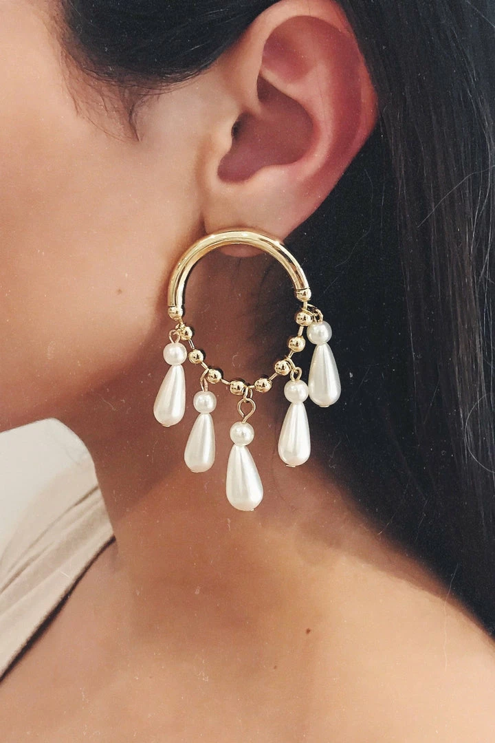 Elegant & chic, the Leonie Gold Round Drop Earrings with Pearls add a touch of class and detail to your gown. Made from stylish gold hardware, these earrings will complete almost any gown perfectly.Â